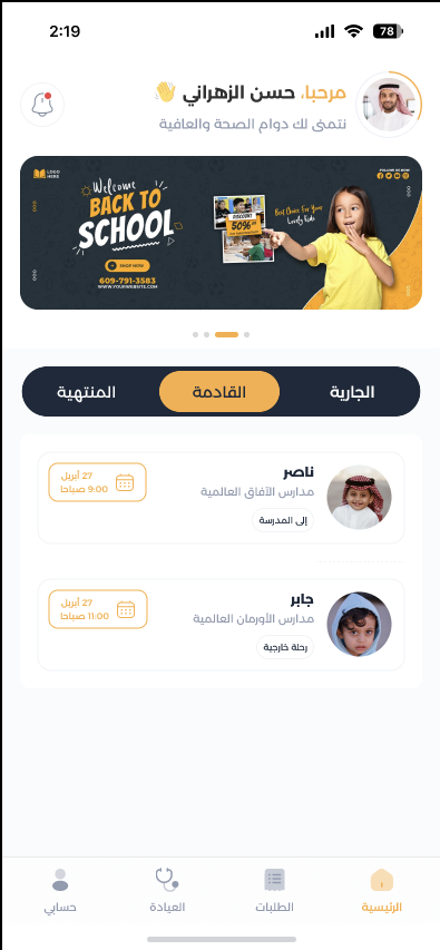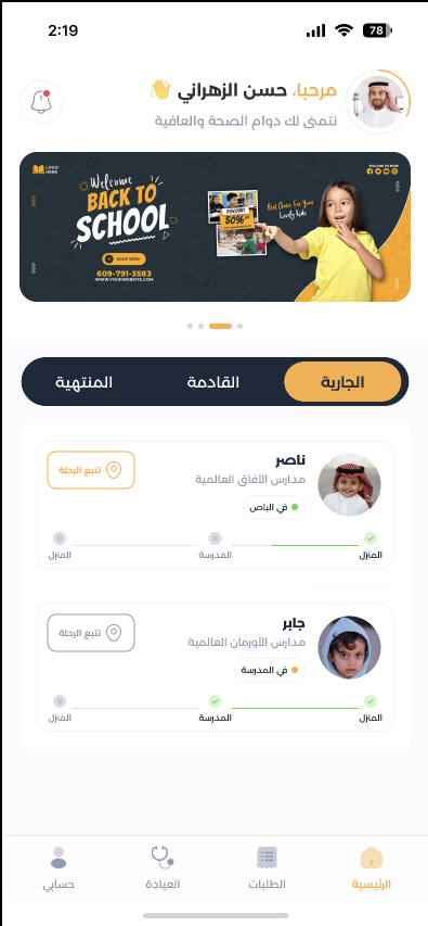 Buscom application A specialized program for managing school bus trips, drivers, and tracking, in addition to managing drivers and students trips, orders, and health, with supporting reports for all actions and issues, and maintenance. Supports student tracking. Supports chatting with the driver. Supports maintenance requests and issues reports, etc.